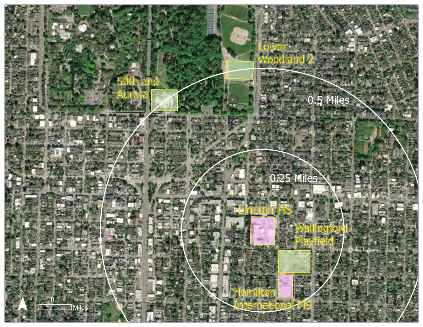 Original proposals from 2024 would have built the fields at Wallingford Playfield—which abuts both Lincoln and Hamilton schools—but these plans were dropped after pushback from some neighbors (a brief history can be found here).